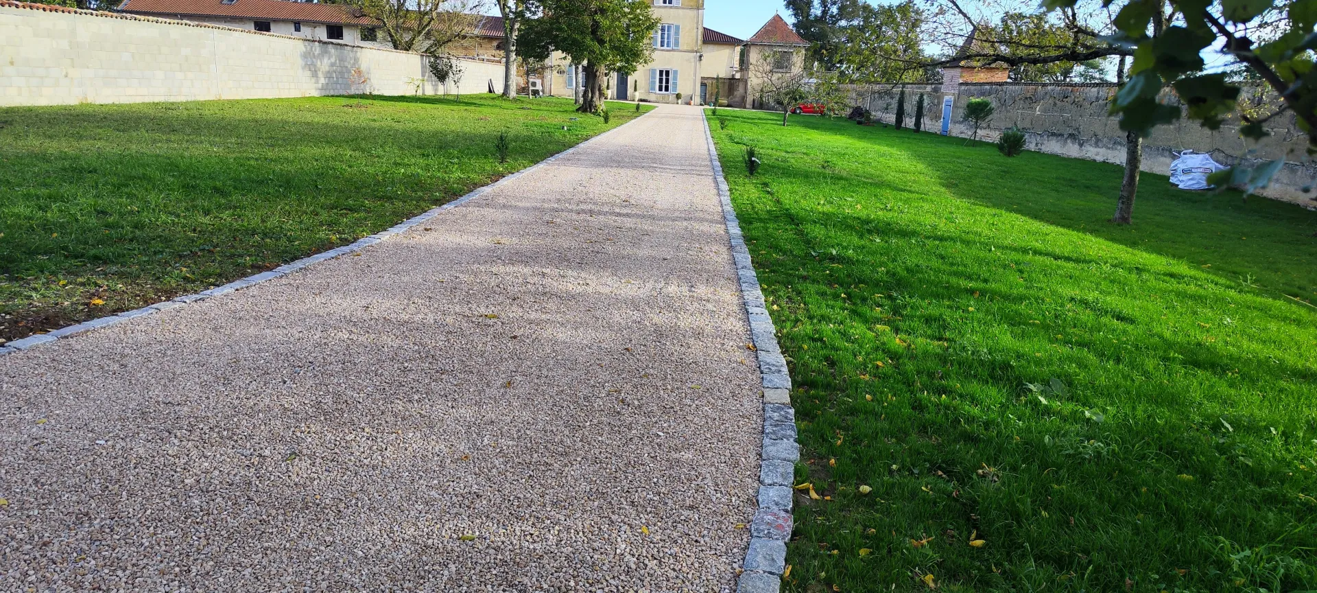 Nos prestations en VRD (Voirie et Réseaux Divers) comprennent la création de chemins d’accès, la pose de bordures et trottoirs, la préparation de terrain, la création de cours en gravier, enrobé ou revêtement drainant, et la réalisation de tranchées techniques pour les raccordements EDF, France Télécom, gaz, eau potable et téléphone. Nous réalisons également des terrains drainés, cuves de rétention ou puits perdus pour éviter les inondations et garantir une bonne gestion des eaux pluviales.