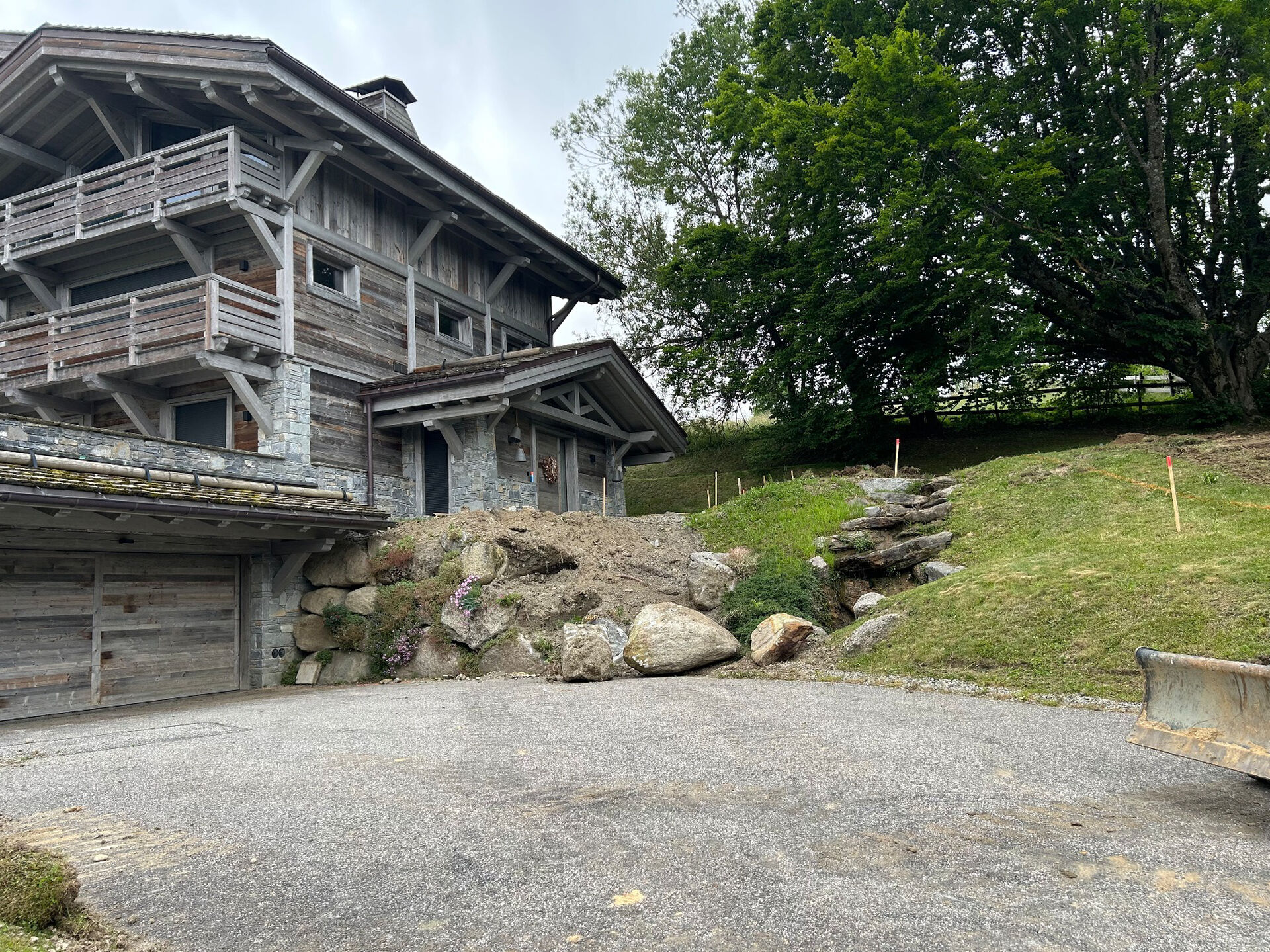 À Champagne-en-Mont-d’Or proche de Lyon, nos équipes réalisent des terrassements sur mesure, adaptés à la topographie et à la structure existante du chalet, pour préparer le terrain aux travaux d’extension et aux installations techniques.